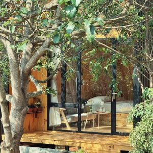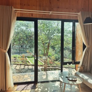 Bungalow gỗ 2 tầng tại XOM Farmstay mang đến trải nghiệm nghỉ dưỡng riêng tư giữa thiên nhiên xanh mát của Pleiku. Không gian được thiết kế bằng gỗ tự nhiên, trần cao thoáng đãng, cửa kính lớn đón trọn ánh sáng và tầm nhìn ra khu vườn yên bình, tạo cảm giác thư giãn ngay từ khi bước vào.